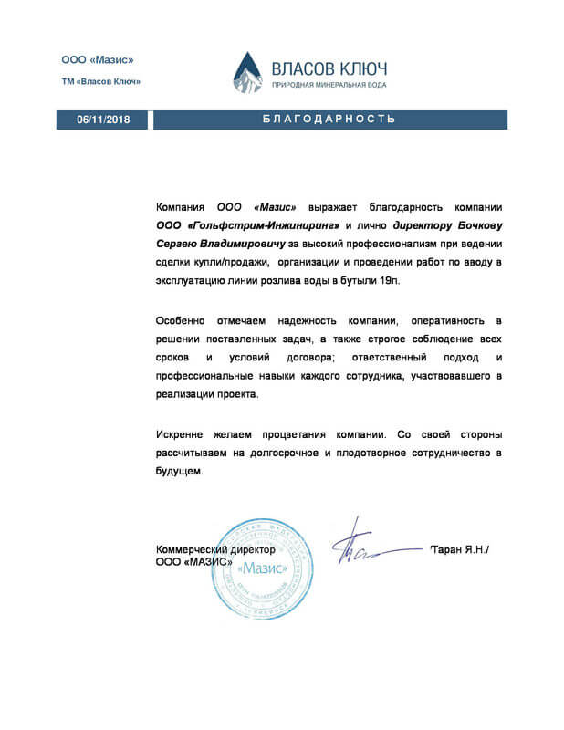 «Гольфстрим-Инжиниринг» – современные линии розлива с гарантией от 5 лет